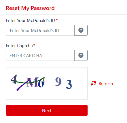 Enter your McDonald's ID (your username - see more info about usernames) and the Captcha:
