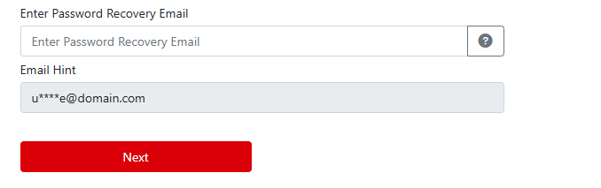 If using recovery email, type in the email address that you have configured as your recovery email. You will be sent an email with a code you will need to enter on the next step to validate your account.