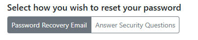 We provide two different methods to validate your identity: recovery email and/or security questions. If you have only set up one of these methods in Global Account Manager, you will automatically be prompted for the method you have set up. If you have set up both methods, you will be able to choose which method to use: