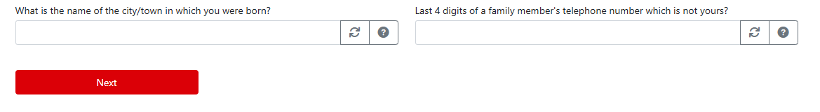If using security questions, you will be prompted to answer two of your configured security questions: